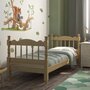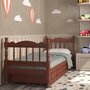 Кровать Аленка изготовлена из массива дерева (сосна), покрыта бесцветным лаком или окрашена в цвет орех, что сохраняет естественную структуру и цвет дерева.