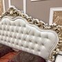 Прямые фасады изготовлены из МДФ с фрезеровкой, а для производства корпуса использовалась ЛДСП. Вычурная фурнитура, накладки, покрытые золотой патиной, качественная обивка и элегантный декор — каждый элемент в коллекции подчёркивает аристократичный вкус владельца.