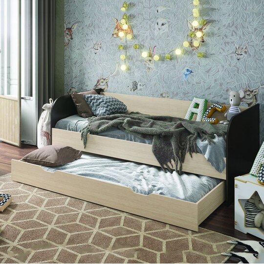 Детская кровать Балли - комфортная элегантная детская кровать с двумя спальными местами. Размеры верхнего спального  места 900/1900 мм, нижнее-800*1800 мм. Второе спальное место можно использовать как ящик для хранения.