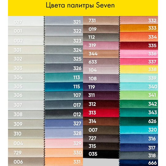 • Велюр Amigo, Onix, Ultra, Enigma, Veltto, Lovely, Fenix/Wool, Galaxy, Dream, Happy, Teddy, Glance, Brabus, Goya;