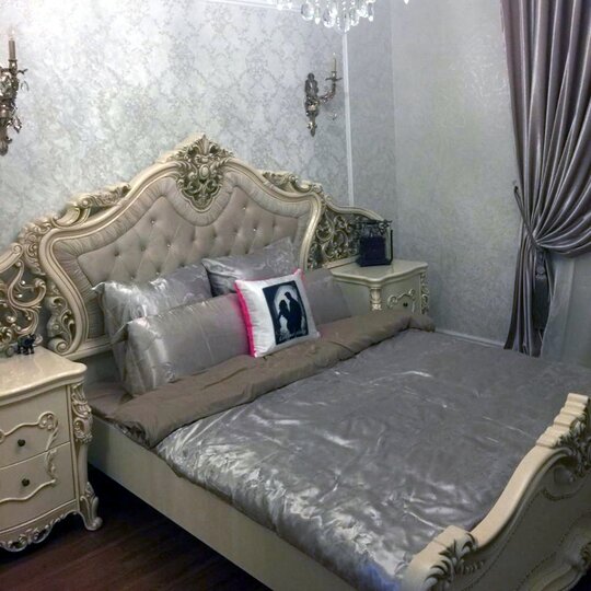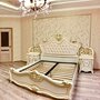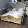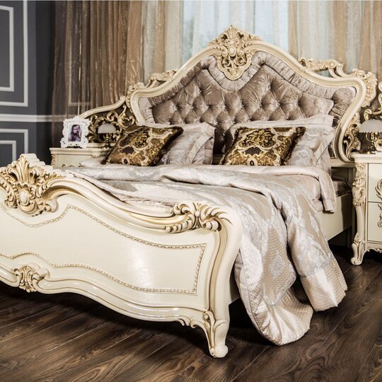 Кровать двуспальная Джоконда-королевское ложе для гурмана, выполненное с использованием элементов декора, характерных для стиля барокко. Высокое изголовье кровати оформлено текстильной мягкой вставкой с каретной стяжкой и стразами. Изголовье и изножье кровати имеют фигурную форму и богатый лепной декор. Кровать представлена в двух вариантах исполнения спальных мест размером 160 х 200 и 180 х 200 см. Кровать оснащена ламельным основанием. Матрас приобретается дополнительно.