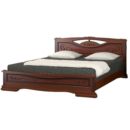 Кровать Елена - благородная комфортная кровать из массива сосны с оформленными витиеватой резьбой и патинированием изголовьем и изножьем. Кровать изготовлена из массива сосны с отдельными элементами из МДФ в нескольких вариантах тонировки. Для кроватей возможен заказ с опцией: универсальные царги и 2 выкатных ящика в комплекте.
