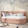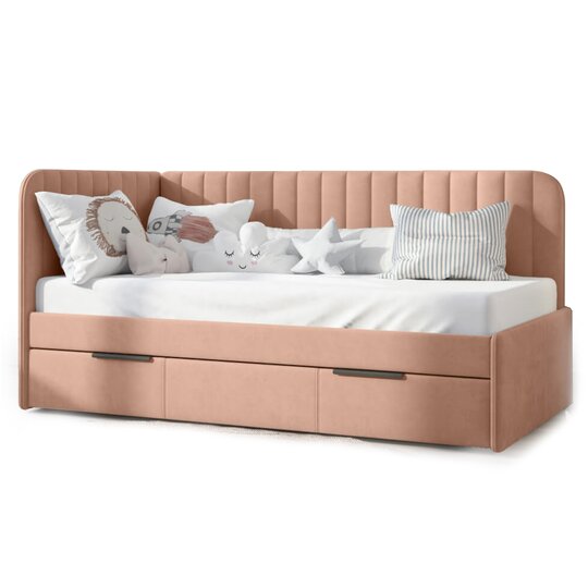 Детская кровать ELLA с вертикальной строчкой и выдвижным ящиком сочетает в себе функциональность, стиль, удобство и комфорт, делая ее отличным выбором для детской комнаты.