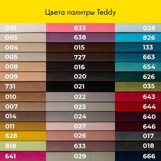 • Велюр - Amigo, Onix, Ultra, Enigma, Veltto, Lovely, Fenix/Wool, Galaxy, Dream, Happy, Teddy, Glance, Brabus, Goya.