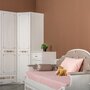 Детская модульная система "Флоренция" привлекает внимание классической геометрией и узорчатой фотопечатью. Фасады дополнительно украшены декоративным профилем. Картину дополняют изящные металлические ручки в цвете "старое золото" и мягкие элементы дивана-кровати, подушки-конфетки. Девочкам особенно понравится стеллаж - удобная система хранения и так необходимое зеркало.