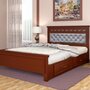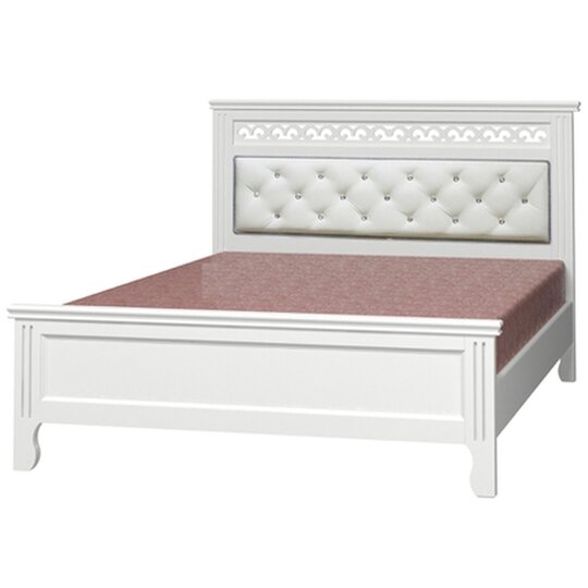 Кровать Грация - изысканная двуспальная кровать с благородным резным изголовьем, декорированным мягкой вставкой из экокожи с каретной стяжкой и стразами, и низким филенчатым изножьем. Кровать изготовлена из массива сосны и представлена в нескольких вариантах тонировки. Есть возможность заказа комплектации с 2-мя выдвижными ящиками.