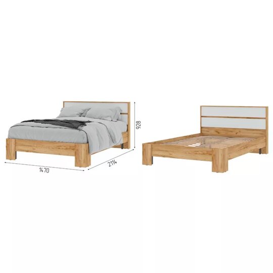 Кровать изготовлена из ЛДСП и состоит из металлического основания с опорами. Модель оснащена ортопедическими ламелями из гнутоклееной березы. В отличие от стандартных кроватей, ортопедическое основание способствует более равномерному распределению веса тела, снимая напряжение суставов и позвоночника.