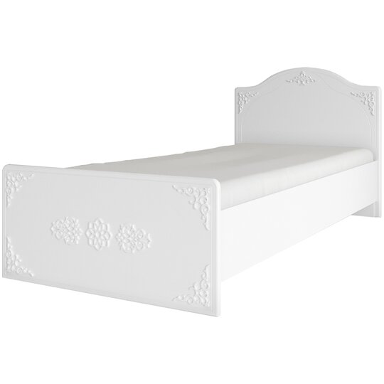 Кровать 900 Кi-кi КРД 900.1 - детская кровать для девочки со спальным местом 90x200 см. Корпус изготовлен из ЛДСП белого цвета, изголовье и изножье - из МДФ.