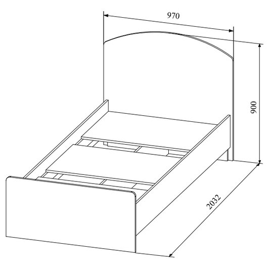 Ширина мм:970 Высота мм:900 Глубина мм:2032 Цвет:белый Спальное место:900*2000 Материал корпуса:ЛДСП Материал фасадов:МДФ Гарантия:12 месяцев Бренд:ДСВ