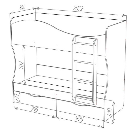 Кровать двухъярусная Кузя - отличное решение для многодетных семей. Она удобна, эргономична и современна. Одна из главных её характеристик - безопасность. Фасад верхнего спального места сделан так, чтобы ребёнок во сне не упал. А лестница, ведущая на второй «этаж», прочная и удобная. Ещё один плюс «Кузи» - экономия места. Спальные места находятся друг над другом, конструкция кровати выполнена с усилениями жесткости, что придает изделию особую прочность. Спальное место кровати имеет размер 800х2000 мм., поэтому в Кузе комфортно и не тесно. Кроме того, модель оборудована двумя выдвижными ящиками. Они двигаются автономно на колёсах, а значит, не повредят покрытие пола. Также ящики вместительны: здесь с легкостью поместится постельное бельё или игрушки.