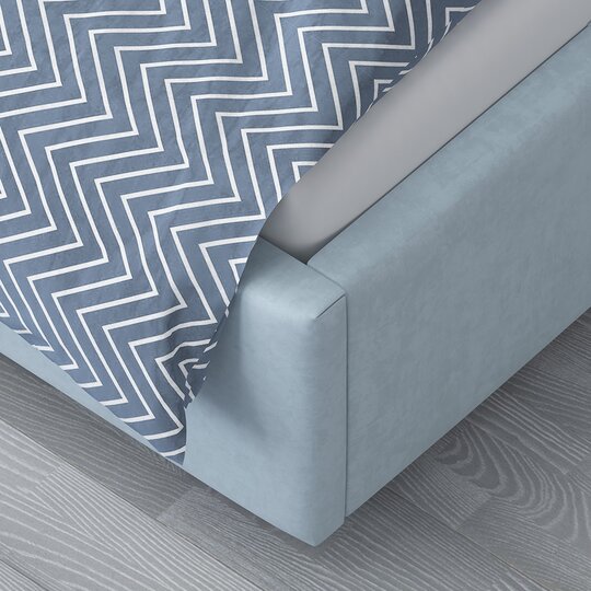 Кровать с универсальной малой спинкой, которую можно установить справа или слева. Обратите внимание, что кровать в базовой комплектации идет с логотипированной универсальной спинкой. При заказе уточняйте нужны ли вам спинки полностью в ткани.