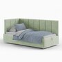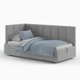 Кровать с универсальной малой спинкой, которую можно установить справа или слева. Мягкая ткань на ощупь, кровать доступна в рогожке, велюре или искусственной коже и доступна в размере 900*2000 мм.
