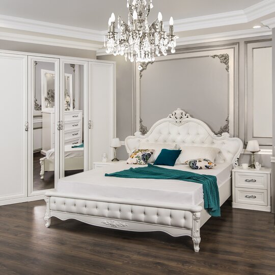 • Стиль – неоклассика (модное сейчас направление в дизайне), эта спальня подойдет к любому интерьеру;