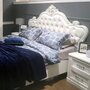 Кровать Мишель-элегантная комфортная кровать с высоким фигурным изголовьем и низким изножьем, оформленными мягкими вставками из экокожи с каретной стяжкой и с изысканным лепным декором. Кровать представлена в двух вариантах исполнения комфортных спальных мест размером 160*200 и 180*200мм. Кровать оснащена ламельным основанием с подъемным механизмом и ящиком для белья. Матрас приобретается дополнительно.