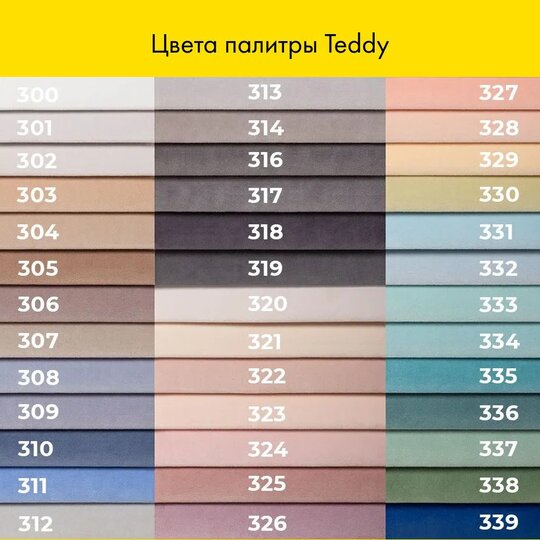 • Велюр - Amigo, Onix, Ultra, Enigma, Veltto, Lovely, Fenix/Wool, Galaxy, Dream, Happy, Teddy, Glance, Brabus, Goya.