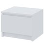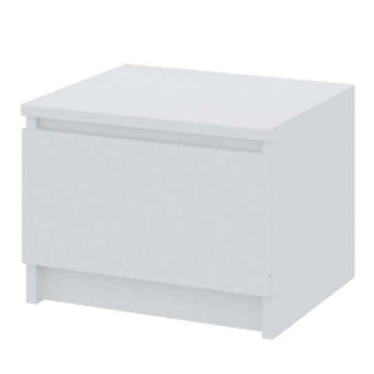 Тумба прикроватная Мори ТПМ 400.1 - лаконичной кубической формы современная прикроватная тумба с вместительным выдвижным ящиком на роликовых направляющих выполнена из белой/серой ЛДСП. На фасаде ящика отсутствует ручка. Функцию ручки выполняет сам фасад (его верхняя часть с внутренней стороны прямая под углом 90°). Открывание ящика производится за счет пространства между планкой и фасадом. Основание тумбы - цокольное.