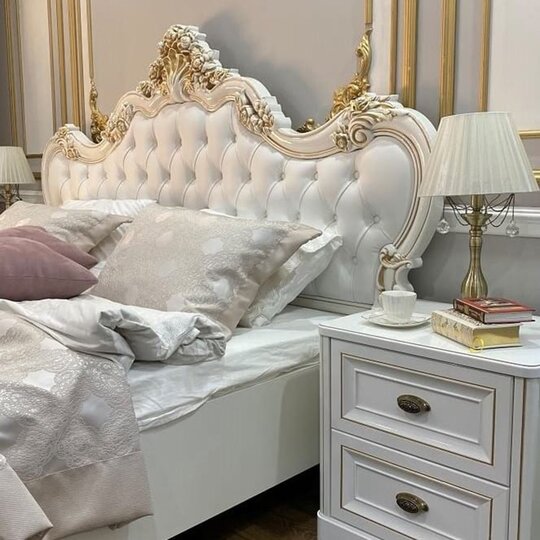 Утонченные элементы, роскошная обивка, витиеватые накладки доставят эстетическое наслаждение своим владельцам. Белый цвет мебели позволяет визуально увеличить пространство спальни, подчеркнуть важные детали, добавив в пространство легкости и света.