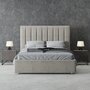 Шикарная интерьерная кровать с высокой спинкой и объемной вертикальной прострочкой. Высота изголовья составляет более метра, что мгновенно делает его красивым фоном в любой спальне. Мягкая ткань на ощупь, кровать доступна в рогожке, велюре или искусственной коже и доступна в размерах 1400*2000 мм, 1600*2000 мм, 1800*2000 мм.