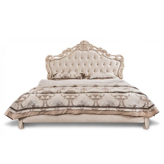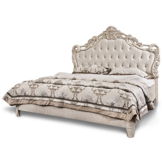 Кровать Патрисия-комфортная элегантная двуспальная кровать с мягким изголовьем и без изножья представлена в двух цветовых исполнениях. Мягкое изголовье декорировано каретной стяжкой и обрамлено объемным роскошным декором. Кровать со спальным местом размером 160*200 или 180*200 см оснащена деревянным основанием с ламелями. Матрас приобретается дополнительно.
