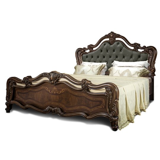 Кровать Илона-роскошная двуспальная кровать с фигурными изголовьем и изножьем, декорированными объемным резным обрамлением и высокохудожественной шелкографией. Кровать оснащена деревянным основанием с ламелями. Размер спальных мест: 180х200 мм. Высота царги позволяет комплектовать кровать матрасом высотой от 23 см (приобретается дополнительно). Посмотреть все матрасы можно здесь.
