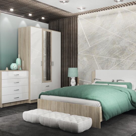 Ширина мм:1440 Высота мм:900 Глубина мм:2032 Цвет:дуб сонома/белый глянец Спальное место:1400*2000 Материал корпуса:ЛДСП Материал фасадов:ЛДСП Гарантия:12 месяцев Бренд:ДСВ