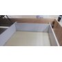 Царги крепятся между собой с помощью мебельных уголков. Основной крепеж – евросаморез. Без металлических ножек, имеет парящую конструкцию. Отсек для хранения белья выполнен в виде короба из ЛДСП и обеспечивает долговечную жесткость конструкции.