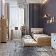 Ширина мм:1270 Высота мм:800 Глубина мм:2040 Цвет:ясень анкор светлый Спальное место:1200*2000 Материал корпуса:ЛДСП Материал фасадов:ЛДСП Гарантия:12 месяцев Бренд:Росток-мебель