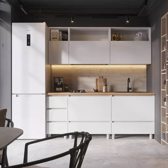 Кухня Хелен 2 м, выполнена в скандинавском стиле, состоит из четырех универсальных модулей.