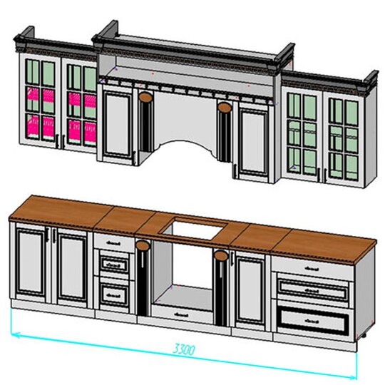 Ширина мм:3300 Высота мм:2560 Глубина мм:600 Цвет:крем глянец Материал корпуса:ЛДСП Материал фасадов:МДФ с фрезеровкой Гарантия:12 месяцев Бренд:Эра-мебель