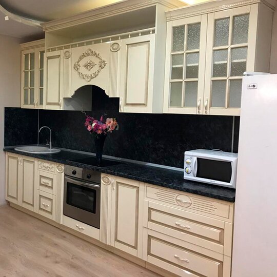 Кухня Верона композиция 1 - комфортная композиция размером Ш330 х В256 х Г60 см в роскошном исполнении в светлой тонировке крем глянец для кухни в классическом стиле. Качество исполнения входящих в композицию модулей обеспечивает их комфортную эксплуатацию. Высота композиции указана при стандартном навешивании секций. Напольные модули укомплектованы индивидуальной столешницей.