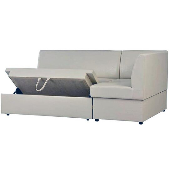 Компактный угловой диван состоит из двух модулей и рассчитан на гостевое использование. В собранном виде занимает минимальную площадь. Изготавливается с углом как на правую, так и на левую сторону. В разложенном виде образует полноценное спальное место. В диване есть просторный ламинированный бельевой короб с легким механизмом открытия. Модель подходит для небольших помещений, часто презентуется как кухонный вариант мягкой мебели. Высота посадочной части аналогична кухонным стульям и идеально подходит для посадки за столом.