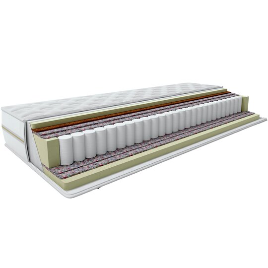 Пружинный разносторонний матрас с ортопедическим эффектом на основе блока независимых пружин «Pocket Spring», пенополиуретана высокой плотности и кокосового волокна. Одна сторона средней жесткости из пенополиуретана придает матрасу упругость, способствуя быстрому расслаблению всех мышц. Вторая более жесткая сторона на основе кокоса и пенополиуретана выдерживает большие нагрузки. Прекрасный выбор для людей, предпочитающих разную жесткость спального места.
