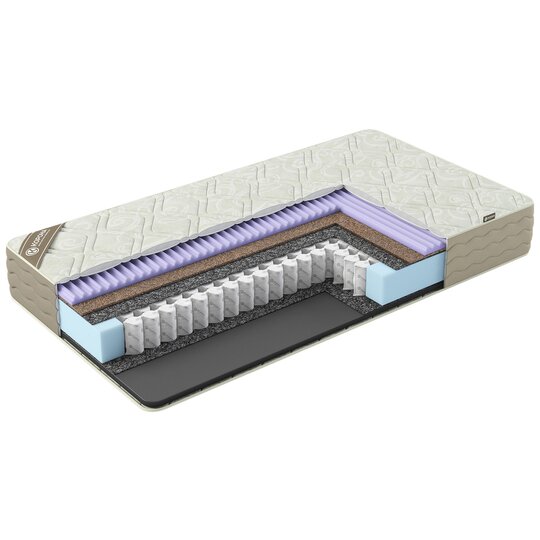 • 1 ст. - термовойлок, кокосовая койра 10 мм, рифленая ортопедическая массажная пена высокой плотности «Ormaform» 35 мм