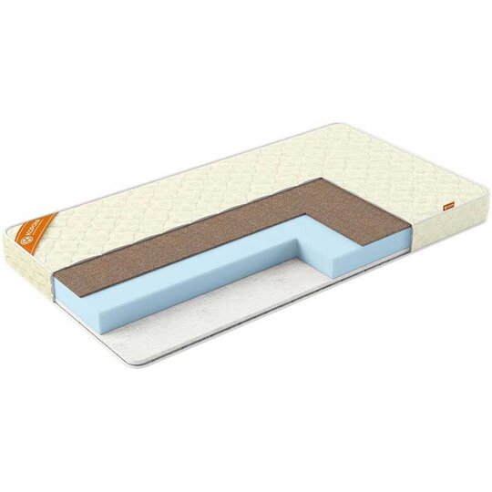 Универсальная модель, в которой можно менять жесткость по мере роста ребенка. Сторона со струттофайбером в раннем возрасте будет подстраиваться под форму тела и способствовать правильному формированию изгибов позвоночника в шейном и поясничном отделах. По мере укрепления мышечной ткани можно использовать более жесткую сторону с кокосовой койрой. Спать на такой стороне нужно на спине для формирования прямой осанки и профилактики сколиоза.