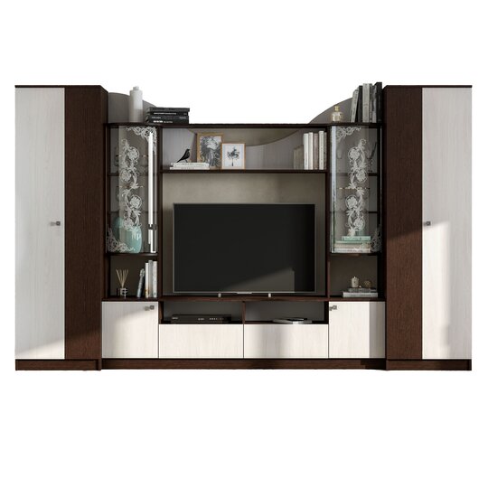 Мебель для гостиной МГС8 фабрики SV-Мебель — бюджетный вариант, который по своей функциональности и красоте не уступает более дорогим гостиным. В стандартной комплектации 3,20 м есть всё самое необходимое, поэтому вы будете чувствовать себя комфортно. Изготовлена из ЛДСП.