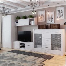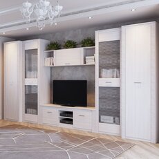 В дизайне модульной системы Гамма 20 используется фактура светлого дерева с контрастными вставками. Функциональные модули содержат множество мест для хранения. Современная элегантная мебель придаст дому законченный вид.