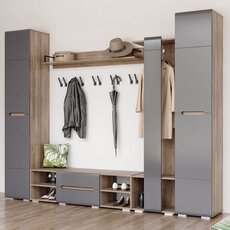 Модульная система Наоми это свежий одухотворенный интерьер, наполненный светом, комфортом и функциональностью. Уникальная геометрия фрезерованных фасадов создает атмосферу ультра-современности и минимализма. Контрастность сочетания матового декора корпуса элитного дерева дуб каньон с безмятежно-белыми/серыми глянцевыми створками относит нас к спокойствию, экологичности и безмятежности. Оригинальное конструктивное решение коллекции – ручки фасадов, выполненные путем сложной фрезеровки и подчеркнутые углубленным декором дубового спила.