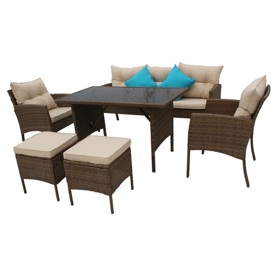 • Комплектация : стол+диван+2 стула+2 кресла ротанг кор., подушки бежевые+декоративные подушки 2шт