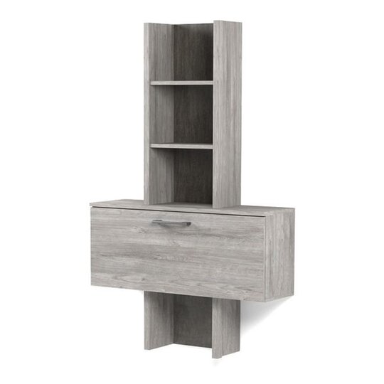 • функциональная конструкция — открытые полки и ниша за откидной дверцей, разделенная вертикальной перегородкой;