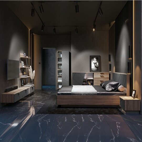 Высокий и компактный пенал Даллас за счет большого количества полок предоставляет обширную зону для хранения вещей и при этом экономит место в помещении. Дизайн модели выполнен в едином стиле со всей модульной коллекцией Даллас: стильный фасад из стекла и МДФ «Титан Силк», черная матовая ручка, корпус древесного цвета.