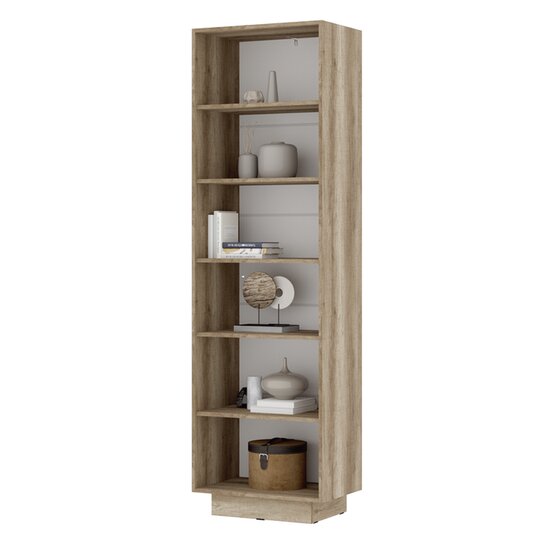 Высокий и компактный пенал Даллас за счет большого количества полок предоставляет обширную зону для хранения вещей и при этом экономит место в помещении. Дизайн модели выполнен в едином стиле со всей модульной коллекцией Даллас: стильный фасад из стекла и МДФ «Титан Силк», черная матовая ручка, корпус древесного цвета.