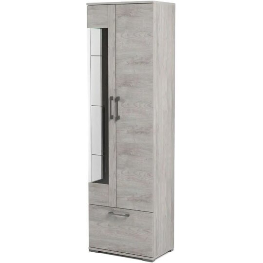 Шкаф-витрина Денвер отличается продуманной конструкцией и стильным исполнением. За стеклянной дверцей можно расставить посуду, книги, предметы декора или любимые фотографии, а за глухими — спрятать личные вещи.