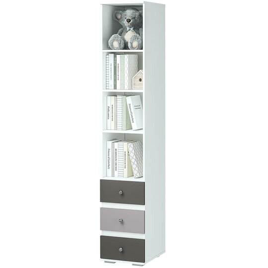 Пенал Мемори ПН-10 – это прекрасный выбор для организации хранения книг и игрушек в комнате ребенка или подростка. Корпус изделия выполнен из ЛДСП белого цвета, фасады трех выдвижных ящиков сделаны в комбинации цветов смоки айс и смоки кисс, украшением модели являются ручки в виде горного хрусталя. Практичное решение по лучшей цене — это пенал Мемори ПН-10 в компании «Семья Мебелони».