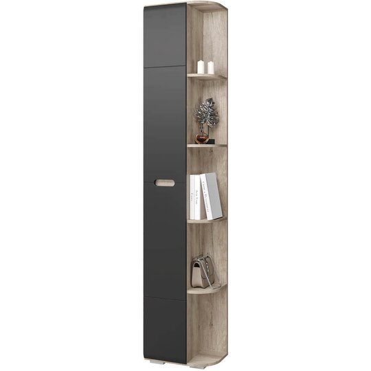 Пенал Наоми не только организует хранение в любой комнате вашей квартиры. Благодаря угловому завершению с открытыми полками, в нем можно разместить необходимые предметы декора или аксессуары для дома, белый/серый цвет фасада дверцы, встроенная ручка и светлый оттенок корпуса позволит изделию вписаться в современный интерьер.