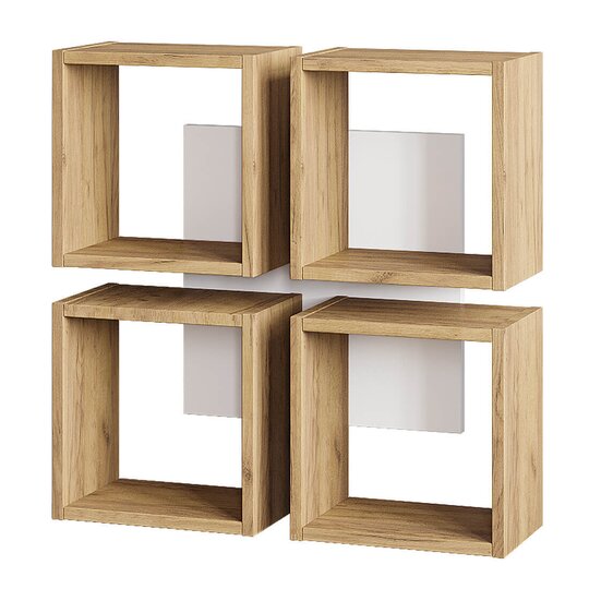 Полка Ион-5 отличается простотой дизайна, но при этом выглядит очень стильно. Изделие состоит из четырех квадратных ниш, скрепленных между собой небольшим фасадом белого цвета, с помощью которого полку можно повесить на стену, модель выполнена из ЛДСП теплого цвета и впишется в любой современный интерьер, вы сможете хранить на полке предметы декора, сувениры, фотографии или книги.