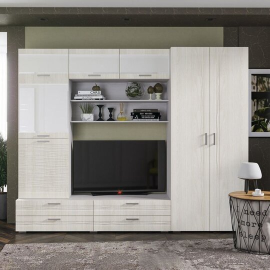 Модульная гостиная Амелия – современная гостиная в светлых тонах. Большой выбор модулей позволит воплотить Ваши представления о гостиной.