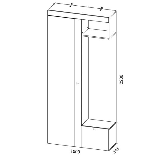 • габариты Ш*В*Г/мм/: 1000*2200*345.