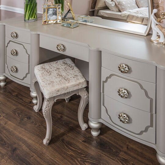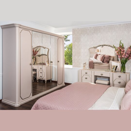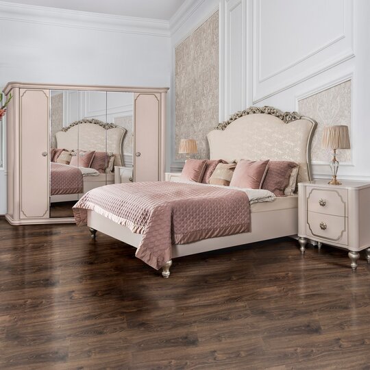 Интерьерная неоклассика — это адаптация классического стиля к реалиям городской квартиры. Все решения, характерные для неоклассики, даются в облегченном виде, с более простыми фактурами, формами и материалами. Мебельная Фабрика Эра представляет вашему вниманию новинку в стиле Венецианская неоклассика-спальня Лали. Романтичная кровать с лёгким филигранным цветочным орнаментом в изголовье подарит романтичное настроение, а мягкая вставка уютного велюра с лазерным тиснением подтвердит новшество прогресса.
