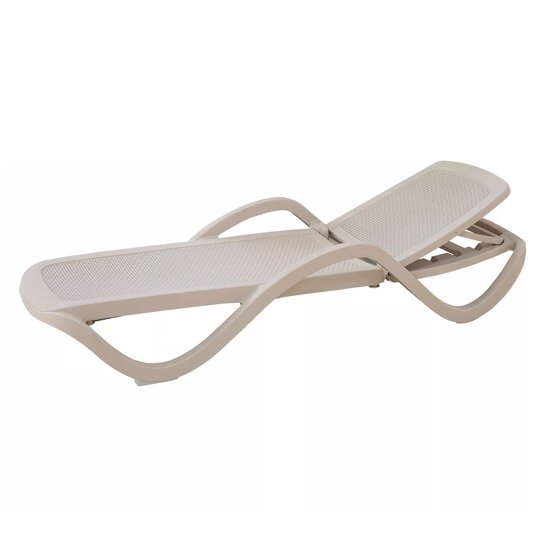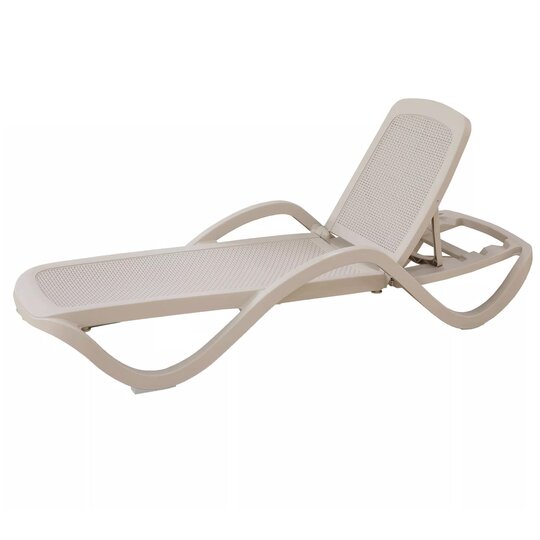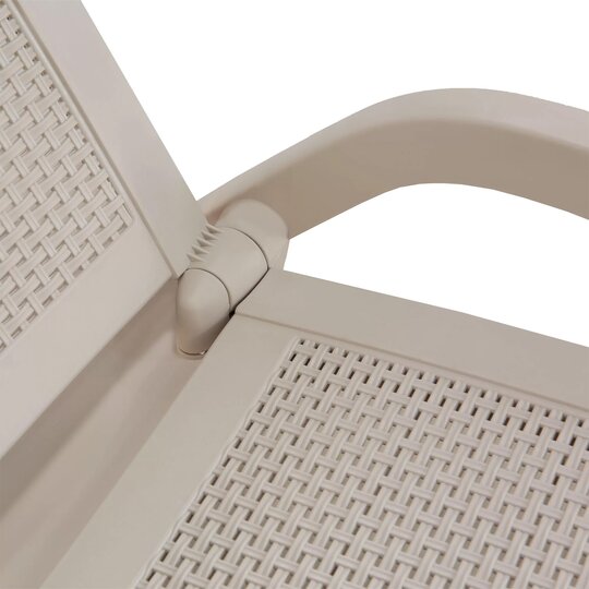 Шезлонг выполнен из пластика с имитацией плетения. Спинка шезлонга имеет 3 наклонных положения для обеспечения максимального комфорта. По бокам два удобных подлокотника. Всё, что нужно для тихой и размеренной жизни.