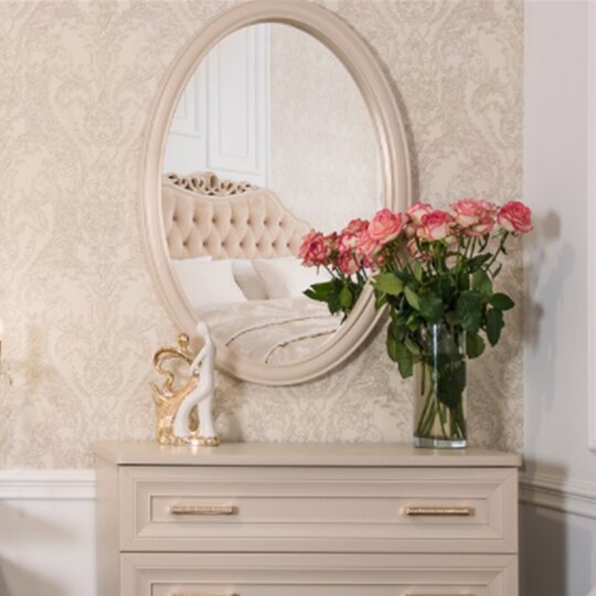 Утонченные элементы, роскошная обивка, витиеватые накладки доставят эстетическое наслаждение своим владельцам. Бежевый цвет «мокко» мебели позволяет визуально увеличить пространство спальни, подчеркнуть важные детали, добавив в пространство легкости и света.